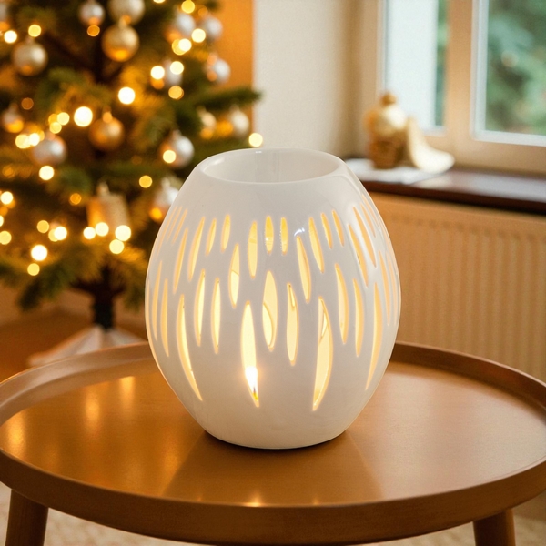 Ses ouvertures, finement travaillées à la main, laissent s'échapper une douce lueur de bougie, accompagnée de la diffusion des parfums, créant ainsi une ambiance chaleureuse et délicieusement parfumée. Conçu pour accueillir vos cires parfumées, senteurs, huiles essentielles et autres solutions parfumées.