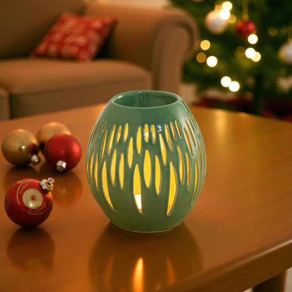 Ses ouvertures, finement travaillées à la main, laissent s'échapper une douce lueur de bougie, accompagnée de la diffusion des parfums, créant ainsi une ambiance chaleureuse et délicieusement parfumée. Conçu pour accueillir vos cires parfumées, senteurs, huiles essentielles et autres solutions parfumées.