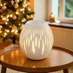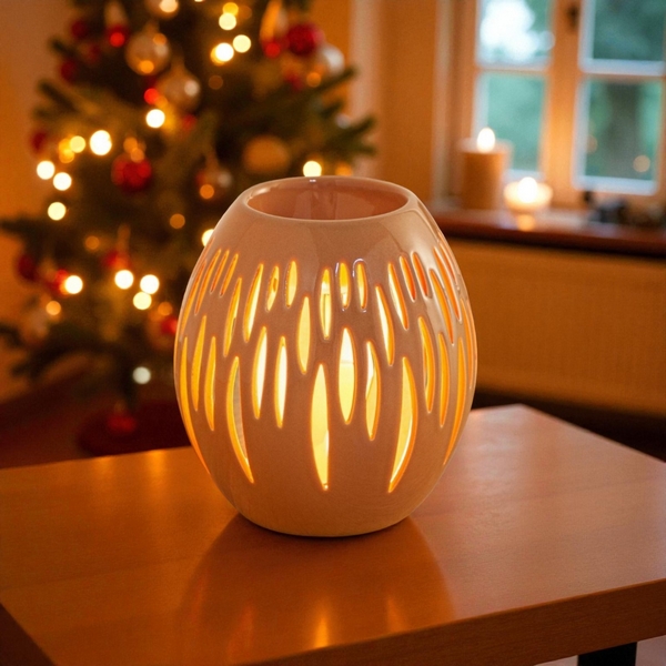 Ses ouvertures, finement travaillées à la main, laissent s'échapper une douce lueur de bougie, accompagnée de la diffusion des parfums, créant ainsi une ambiance chaleureuse et délicieusement parfumée. Conçu pour accueillir vos cires parfumées, senteurs, huiles essentielles et autres solutions parfumées.