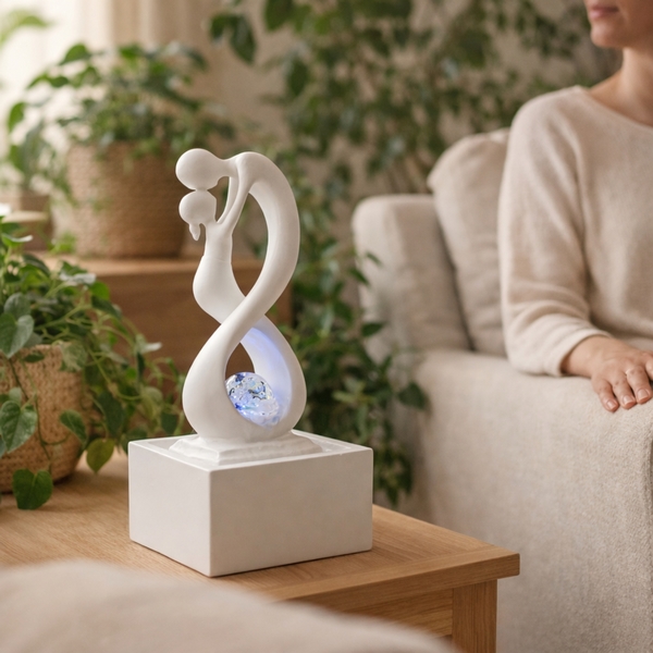 La fontaine Amor est le fruit d'une volonté d'associer fontaine et art contemporain. La partie haute représente un couple d'amoureux enlacés avec à leurs pieds une boule de verre entraînée en rotation par le mouvement de l'eau. La boule est également illuminée par un éclairage led à variation de couleur. Cette sculpture à une double symbolique car le couple forme également le symbole de l'infini que l'on peut associer à leur amour. Simplicité dans les lignes mais également dans la couleur avec uniquement du blanc pour resté dans la pureté.