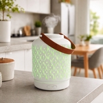 Conçu en matériaux nobles tels que le métal et le bambou, l'Elipsia ne dispose d'aucun bouton visible afin de proposer un design parfait et fluide. L'astuce réside sous l'appareil avec un système très ingénieux intégré dans l'un des pieds. Il suffit d'appuyer sur le diffuseur pour piloter le système. En appuyant 1 ou plusieurs fois sur le diffuseur, vous pouvez: -lancer une diffusion avec éclairage à changement de couleur automatique; -fixer la couleur de l'éclairage; -stopper l'éclairage tout en diffusant. Le diffuseur s'illumine totalement et crée une ambiance colorée et parfumée.