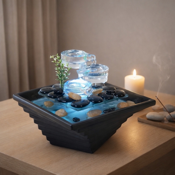 - Contenu: fontaine, vasque, pompe avec led.