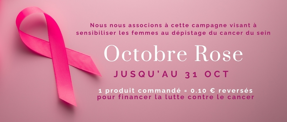 Ce mois-ci, nous nous associons à la lutte contre le cancer du sein. Pour chaque produit acheté, 0,10 € seront reversés à une association engagée dans la recherche et l’accompagnement des patientes. Un petit geste qui, ensemble, peut faire une grande différence 💕